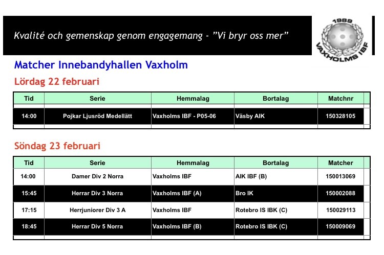 Kom och heja på våra lag!! Vaxholms IBF 22 feb 2020 0kommentarer